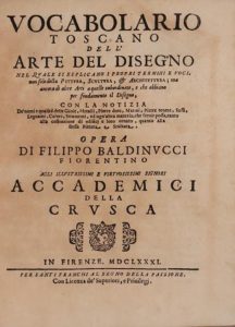 BALDINUCCI (Filippo). Vocabolario toscano dell' arte del disegno, nel quale si esplicano i propri termini e voci, non solo della pittura, scultura & architettura ; ma ancora di altre arti a quelle subordinate, e che abbiano per fondamento il disegno....