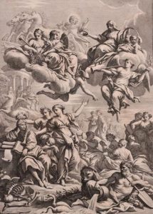 par Antonio Lorenzini d'après Antonio Domenico Gabbiani, de l'emblème de l'Accademia della Crusca au titre et de nombreux bandeaux et culs-de-lampe.