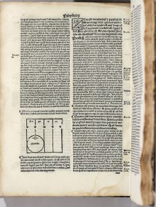 Au début du texte, un bois au tiers de page représente Thomas d'Aquin en chaire, enseignant au roi de France et aux philosophes ; le texte, imprimé sur deux colonnes, est illustré de quelques schémas gravés sur bois. On a relié en tête du volume : JEAN PHILOPON. Cognomento in quattuor primos Aristotelis de naturalis auscultatione libros. Venise, Brandino & Ottaviano Scoto, 1542.
