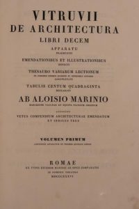 VITRUVE. De architectura libri decem. Rome, Luigi Marini, 1836. 4 volumes in-folio, bradel cartonnage écru (Reliure de l'époque). Importante édition critique publiée et imprimée par Luigi Marini (1768-1838). Le quatrième volume renferme 140...