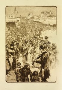 MOUREY (Gabriel). Fêtes foraines de Paris. Paris, [Les Cent Bibliophiles], 1906. In-4, plats de maroquin brun, tranches dorées sur témoins, doublure de maroquin mosaïqué d'une composition art nouveau, garde de moire, couverture et dos,...