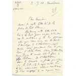aller à Akabli, où il veut chercher son fils pour le ramener ici. » • Tamanrasset, 2 juillet 1910 ; 3 p. in-12. C. de F. remercie le colonel de lui avoir fait parvenir un morceau de toile bleue, réclamée dans une lettre précédente. Le colonel lui a également envoyé deux militaires : l’un d’eux a longuement erré dans l’Atakor, avant de finir par gagner l’Assekrem. « Lui et son chameau étaient exténués. » C. de F. a confié à un méhariste le soin de transporter « tout ce que portait le militaire » jusqu’à l’Assekrem. C. de F. engage le colonel à lui soumettre les lettres qu’il souhaite traduites : « avec B. Hammou c’est facile. » Il précise de plus le nombre de bidons dont il a besoin. Il espère que le docteur voudra bien lu envoyer de la vaseline et des pilules de mercure, et mentionne « une négresse de 20 ans » souffrant d’un chancre, qu’il ne sait pas soigner. « Que faut-il faire, outre le mercure, et les lavages de permanganate ? » Il s’inquiète enfin de la nouvelle blessure du capitaine et se réjouit de la guérison de Teisseire.