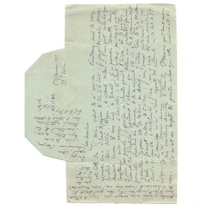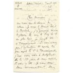 son voyage, car « la question d’eau est très simplifiée ». En son absence, Moûsa ira chercher sa femme dans L’Aorar. C. de F. remet son travail sur le lexique à son retour, au mois d’avril. Il verra le commandant, ainsi que le colonel, à ce moment-là. « Mes amitiés à tous les Français qui sont avec vous. » De petites déchirures sans manque. • Adrar (Touat) (région de l’Ouest du Sahara algérien), 7 avril 1911 ; 3 p. ½ in-12, avec enveloppe. C. de F. détaille son itinéraire de retour : il passera par In Salah avant de rejoindre Tamanrasset. Il propose au colonel de le rencontrer à Tamanrasset, ou, quelques jours plus tard, au fort de Motylinski. Il prévoit de passer une grande partie de 1911 et 1912 à l’Assekrem, et invite le colonel à lui rendre visite : « J’irai peut-être m’y installer tout de suite après vous avoir vu ; ne viendrez-vous pas y pendre la crémaillère avec moi ? » Il transmet les amitiés du colonel Laperrine et du commandant Winaux.