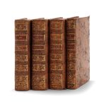 illustrée de 33 planches (dont une repliée) de très belles figures d’anatomie, de dissection, etc. hors texte et nombreuses figures dans le texte, le tout finement gravé sur cuivre. Quatrième (1er vol.), troisième (2e vol.) et première (vol. 3 et 4) éditions. Ex-libris manuscrit sur la première garde blanche. Quelques légères rousseurs ; légère mouillure claire en tête de quelques ff. du 3e volume. Rare et bon ensemble, complet des quatre volumes, rarement réunis, et des planches. Wellcome, II, 138. JOINT : • WINSLOW (Jacques-Benigne). Exposition anatomique de la structure du corps humain. Paris, Savoye, D’Houry, Didot, etc., 1766 ; 4 vol. in-12, veau marbré, dos à nerfs orné de motifs dorés, pièces de titre et de tomaison rouges, [rel. de l’époque], un peu frottée, une coiffe absente. Illustré de 7 planches d’anatomie gravées sur cuivre repliées, réunies en fin du dernier volume. Cachet humide Charreau, ex-libris manuscrit sur les ff. de titre. Quelques légères rousseurs ou mouillures claires. Wellcome, V, 453 (annonce un portrait, ici absent).