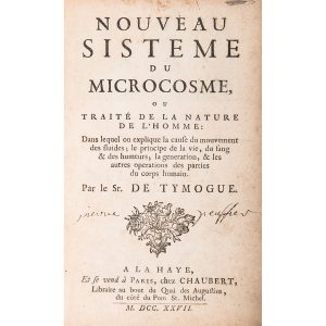 TYMOGUE (de, pseud. d’Edme GUYOT). Nouveau sisteme du microcosme, ou Traité de la nature de l’homme : dans lequel on explique la cause du mouvement des fluides ; le principe de la vie, du sang & des humeurs ; la generation, & les autres...