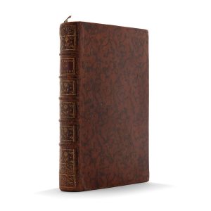 légèrement frottée, petites greffes de cuir discrètes sur les plats. Véritable édition originale de cet ouvrage essentiel. Portrait, frontispice, 7 figures hors texte (dont une repliée), 58 figures dans le texte, 27 en-têtes, 22 culs-de-lampe, une vignette de titre, le tout gravé sur cuivre par Folkema, François Morellon de La Cave, Bernard Picart et Jacob Van der Schley. Composé avec l’aide de sa maîtresse Émilie du Châtelet, l’ouvrage de Voltaire introduisit véritablement pour la première fois la pensée de Newton en France. « L’édition de 1738 fut imprimée par Ledet, à qui Voltaire avait confié le manuscrit incomplet des Élémens. Ledet fit achever l’ouvrage par un mathématicien hollandais et le mit en vente vers la fin de mars ou le commencement d’avril 1738. » (Bengesco). Ex-libris manuscrit Baillard 1768 sur le f. de faux-titre, A. Le Blanc au verso du portrait. Une correction manuscrite à l’encre. Rousseurs plus ou moins présentes en fonction des cahiers. Cohen, 1037 (cite le second tirage chez Desbordes ; donne 25 en-têtes, 25 culs-de-lampe et ne donne pas le nombre de figures). Wellcome, V, 363 (tirage Desbordes). Bengesco, 1570 (donne le bon nombre d’en-têtes et culs-de-lampe).