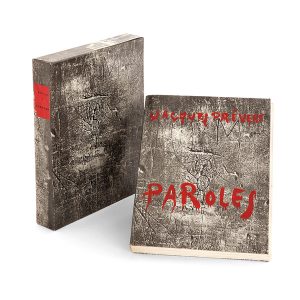 [BRASSAÏ].— PRÉVERT (Jacques). Paroles. Paris, Le Calligraphe, 1945 ; in-8, broché, couverture illustrée rempliée, étui illustré. Édition originale Tirage à 334 exemplaires numérotés ; un des 300 sur papier vélin de Rives, second...