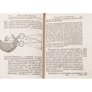 DESCARTES (René). Tractatus de homine, et de formatione foetus. Amstelodami, ex typographia Blaviana [Amsterdam, Blaeu], 1686 ; gr. in-8, veau brun granité, dos à nerfs orné de motifs dorés, pièces de titre rouges, [rel. de l’époque], coins...