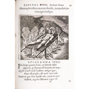 [rel. de l’époque], un coin discrètement refait à l’époque. [4] ff., 150 p. Troisième édition, et la première sous ce titre, de ce fameux et rare ouvrage de la littérature alchimique, publié la première fois à Oppenheim en 1617, intitulé Atalanta Fugiens. L’ouvrage est illustré de 50 figures énigmatiques autant que fantastiques, gravées sur cuivre dans le texte par Matthäus Merian. Matthäus Merian l’Ancien (Matthäus Merian der Ältere, 1593-1650) est un graveur sur cuivre et éditeur germano-suisse, connu comme un spécialiste des allégories mystérieuses et des illustrations religieuses et pour ses recueils topographiques. Dans ce livre fascinant on retrouve la légende d’Atalanta en termes alchimiques. Légères rousseurs sans gravité. Caillet, 6696. Ferguson, II, 64. Absent de Guaita.