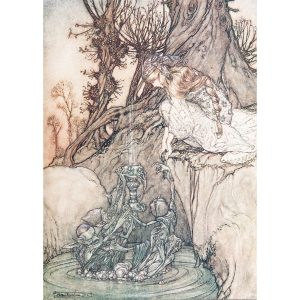 RACKHAM (Arthur). L’Œuvre de Arthur Rackham. Paris, Hachette, [vers 1913] ; in-4, cartonnage de l’éditeur parchemin, titre et décor dorés au plat supérieur et au dos, tête dorée, traces de rubans en gouttière, cartonnage légèrement...