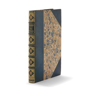 THEURIET (André). Nos oiseaux. Paris, Librairie artistique-H. Launette et Cie, 1887 ; in-4, demi-maroquin bleu pétrole à coins, dos orné de motifs dorés et mosaïqués, tête dorée, couvertures conservées, [Dervois Rel.], dos légèrement...