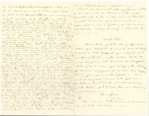 Mercredi [Bucarest automne 1887] : « Tout se passe à mon gré dans mon voyage. Tu as eu de la bonté de reste de te tracasser de ces articles de journaux ; c’était à prévoir ; si tu savais le dédain que j’en fais »…