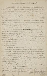 Journal de bord, commencé « À bord du Redoutable, Lundi 24 Septbre » [1900] et tenu jusqu’au Mardi 9 octobre (10 ff.). Relation très détaillée des préparatifs de la flotte à Takou et du débarquement des Européens à Shan-Haï-Kouan. Au verso, brouillon de lettre au Consul général pour aller visiter avec la flotte les ports de Chine, en commençant par Foutcheou.