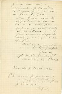 Auguste RENOIR (1841-1919). L.A.S., 5 janvier [19]02, [à son ami Paul Bérard] ; 2 pages in-8 sur papier quadrillé. Sur sa prochaine installation dans le Midi. Ayant l’intention de partir dans le Midi dans une huitaine de jours,...