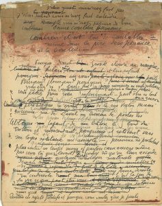 abondamment raturé et corrigé, de pensées diverses sur la condition d’artiste, la peinture, sur les grands peintres. Il s’agit peut-être du brouillon d’une conférence, puisque Rouault s’adresse de temps en temps à des « chers auditeurs »…