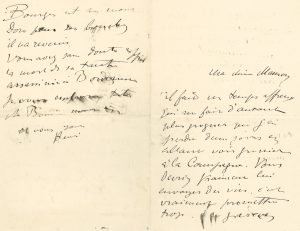 Henri de TOULOUSE-LAUTREC (1864-1901). L.A.S. « Henri », [Paris juillet 1887], à sa mère ; 2 pages et demie in‑8. « Il fait un temps affreux qui me fait d’autant plus grogner que j’ai perdu deux jours en allant voir Grenier [son...