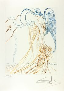 10 pointes sèches originales en couleurs hors texte de Salvador Dali, chacune signée et numérotée. ¶ Tirage à 150 exemplaires sur vélin de Rives, celui-ci l'un des 130 nominatifs. ¶ On y joint deux menus du dîner du 5 novembre 1974 illustrés d'une des pointes-sèches de Dali. ¶ Dos de la chemise et de l'étui passés.