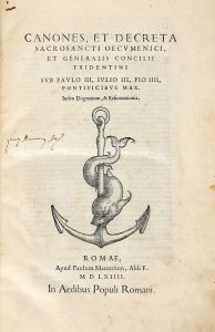 CANONES, ET DECRETA SACROSANCTI ŒCUMENICI, ET GENERALIS CONCILII TRIDENTINI SUB PAULO III, IULIO III, PIO IV, pontificibus max. — Index Dogmatum, & Reformationis. — Romae : apud Paulum Manutium, Aldi f., 1564. — In-folio (mm 330x220).