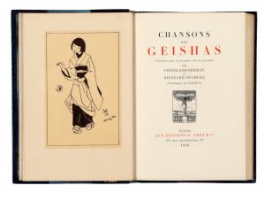 CHANSONS DES GEISHAS. — Traduites pour la première fois du japonais par Steinilber-Oberlin et Hidataké-Iwamura. Frontispice de Foujita. — Paris : Aux éditions G. Crès, 1926. — In-8° (mm 165x110).
