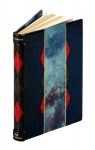 Bella legatura firmata Aubriot in marocchino blu notte con intarsi in marocchino rosso, verde e in carta marmorizzata, titoli impressi in oro al dorso.