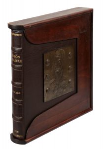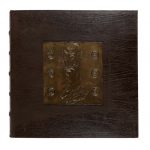 Legatura editoriale in piena pelle con bassorilievo in bronzo al piatto anteriore raffigurante Bolivar.