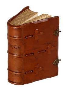 Graziosa legatura firmata Rosen, Venezia in piena pelle con maglie e gigli in rilievo, titoli impressi a secco al dorso a 3 nervi e fermagli in metallo conservati ; qualche traccia di sporco ma buona conservazione.
