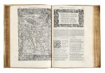 Frontespizio architettonico con marca dello stampatore e ritratto dell'Autore in cornice, capilettera e altri ornamenti tipografici al testo, argomento entro bordura architettonica e una tavola a piena pagina in apertura di ciascuno dei 46 canti, il tutto finemente inciso in legno.