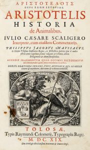 ARISTOTELES, — Historia de Animalibus. — Iulio Caesare Scaligero Interprete, cum eiusdem Commentarijs. — Tolosae : Typis Raymundi Colomerij, 1619. — In-folio (mm 335x220).