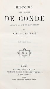 AUMALE HENRI, — Historie des Princes De Condé pedant les XVI et XVII siecles. — Volume I (-VII). — Paris : Calmann Lévy, 1896. — 8 volumi in-8° (mm 225x130).
