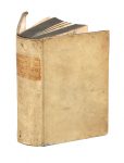 Legatura seicentesca in piena pergamena rigida con titoli impressi in oro su falso tassello al dorso.