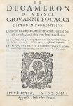 BOCCACCIO GIOVANNI, — Il decameron [...] di nuovo ristampato, e riscontrato in Firenze con testi antichi, & alla sua vera lettione ridotto. — Dal cavaliere Lionardo Salviati [...].— Et in questa ultima impressione adornato di bellissime...