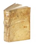 Legatura coeva in piena pergamena floscia con titoli non più leggibili al dorso, due strappi alla cerniera posteriore e lacerti di legacci..