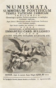 BUONANNI FILIPPO, — Numismata summorum pontificum templi Vaticani fabricam indicantia, chronologica ejusdem fabricae narratione... — Romae : ex typographia Dominici Antonii Herculis, 1696. — In-folio (mm 400x255).