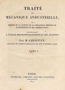 CHRISTIAN GERARD JOSEPH, — Traité de mécanique industrielle... — Tomo I (- IV). Paris : Bechelier libraire, 1822-1825. — 4 volumi in-4° (mm 255x190).