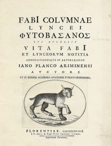 COLONNA FABIO, — Phytobasanos cui accessit Vita Fabi et Lynceorum notitia adnotationesque in Phytobasanon Iano Planco Ariminensi auctore…— Florentiae : P. Aere, & typis Petri Caietani Viviani, 1744. — In-4° (mm 275x215).