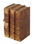Legatura coeva in piena pelle maculata con titoli dorati su tasselli ai dorsi a 5 nervi.