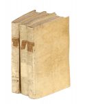 Legatura coeva in piena pergamena rigida con titoli impressi in oro su tasselli al dorso, in parte mancanti.