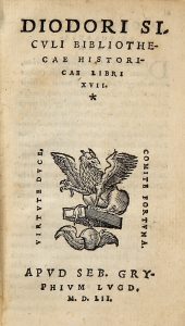 DIODORUS SICULUS, — Bibliothecae historicae libri XVII. — Lugd. : apud Seb. Gryphium, 1552. — In-16° (mm 123x65).