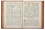 Bella vignetta con scena di caccia incisa in legno ai due frontespizi, il primo anche con titoli stampati in rosso e nero, e con 60 figure nel testo (53 nella prima parte) a mezza pagina e 3 a piena pagina, finemente incise in legno. Qualche forellino sparso ma buona copia.
