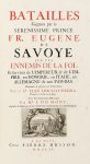 DUMONT Jean, — Batailles gagnées par le serenissime prince F. Eugene de Savoye sur les ennemis de la foi, et sur ceux de l'Empereur & de l'Empire, en Hongrie, en Italie, en Allemagne & aux Pais-Bas. — Depeintes & gravées en Taille-douce par le...
