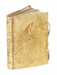 Legatura coeva ma rimontata da altro esemplare, in piena pergamena semi-floscia con lacci conservati, titoli manoscritti al dorso non più leggibili.