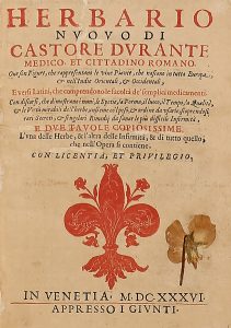 DURANTE CASTORE, — Herbario nuovo [...]. — Ove son figure, che rappresentano le vive piante... — In Venetia : Appresso i Giunti, 1636. — In-4° (mm 245x180).
