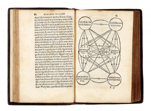 Marca dello stampatore incisa in legno al frontespizio e un diagramma xilografico a piena pagina.