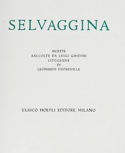 GHIDINI LUIGI, — Selvaggina. — Ricette [...] litografie di Leonardo Dudreville. — Milano : Ulrico Hoepli, s.a. [ma 1942 ca.] — In-folio (mm 325x225).