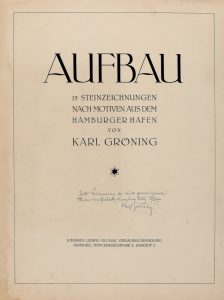 GRÖNING Karl, — Aufbau. 15 Steinzeichnungen nach Motiven aus dem Hamburger Hafen. — Hamburg : Johannes Ludwig Glogau 1920. — In-folio (mm 555x420).