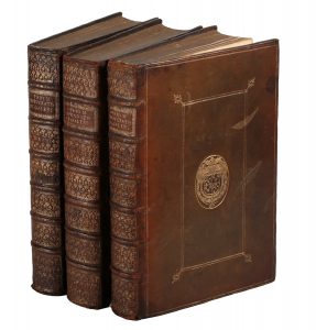 Splendida legatura coeva alle armi in marocchino marrone con al centro dei piatti stemma del marchese Louis Phélypeaux de La Vrillière, Segretario di stato, inquadrato da duplice cornice di filetti ; titoli impressi in oro al dorso a 7 nervi e comparti decorati con monogramma coronato.