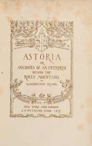 IRVING WASHINGTON, — Astoria, or Anecdotes of an Enterprise Beyond the Rocky Mountains. — Vol. I (-II). New York and London : G.P. Putnam's Sons, 1897. — 2 volumi in-8° (mm 260x180).