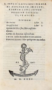 LACTANTIUS LUCIUS CAECILIUS FIRMANIUS, — Divinarum institutionem libri septem proxime castigati, et aucti. — De ira Dei, liber I. — De opificio Dei, liber I.— Epitome in libros suos acephalos. Phoenix. — Carmen de Dominica resurrectione...