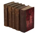 Nel complesso però bella copia. Legatura ottocentesca in mezza tela con piatti rivestiti in carta marmorizzata, diversa per il tomo V. Titoli impressi in oro al dorso.