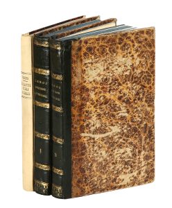 Legatura in mezza pelle coeva con piatti in cartone marmorizzato ; fregi e titoli impressi in oro al dorso.